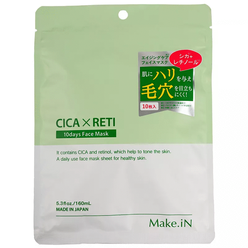 Маска для лица на основе центеллы азиатской и ретинола на 10 дней Мейк.иН, 10 шт. (160 мл) Make.iN CICA×RETI 10 days Face Mask.